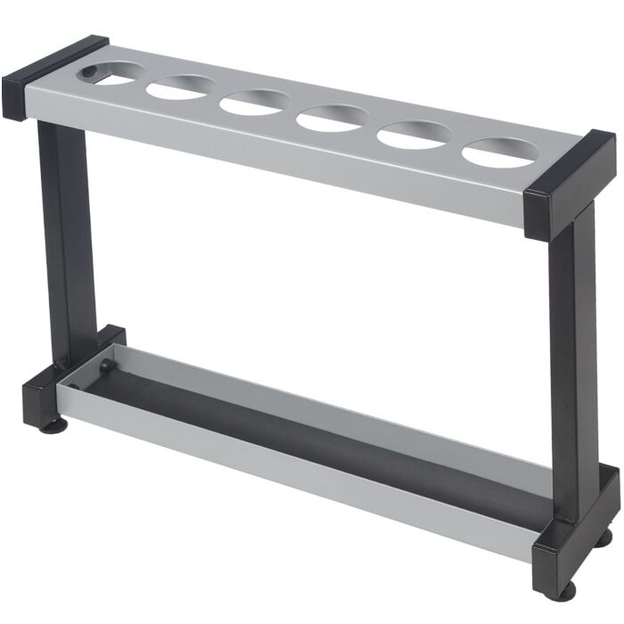 Stalen vrijstaande parapluhouder met 6 gaten voor paraplu´s, voorzien van een lekbak in de kleur RAL 9006-witaluminium. De paraplustandaard is 450 mm. hoog, 600 mm. breed en 150 mm. diep. Stalen staanders van dikwandige koker 50x25 mm., geëpoxeerd in een standaard RAL-kleur. Een niet te missen accessoire voor in de hal of garderobe van huis, kantoor, restaurant of winkel, uitgevoerd in een mooi en strak design. Onze parapluhouder is voorzien van een lekbak. Zo kan de paraplu er ingezet worden als deze nog nat is en blijft de vloer droog. Met deze prachtige paraplubak verfraait u niet alleen de hal, u heeft ook nooit meer last van rondslingerende paraplu’s.